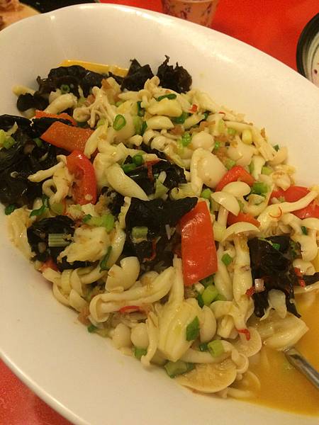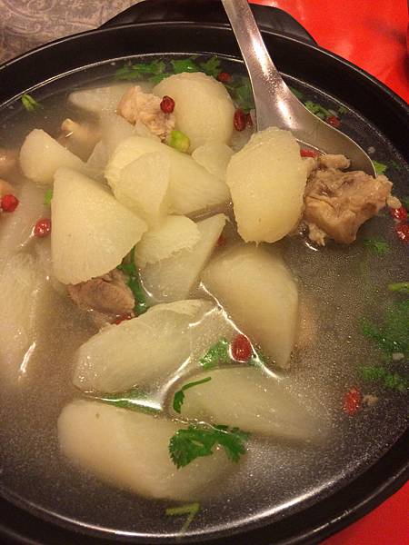 這鍋好像叫升官發財?但我只記得它是鍋香氣沁人心脾的花生蓮子蘿蔔豬腳湯。花生與蓮子入口即化,豬腳的膠質化進燉煮極透的白蘿蔔裡,湯喝起來卻鮮甜而無油腥,是在盛夏喝起來暖心卻無負擔的神奇湯品。